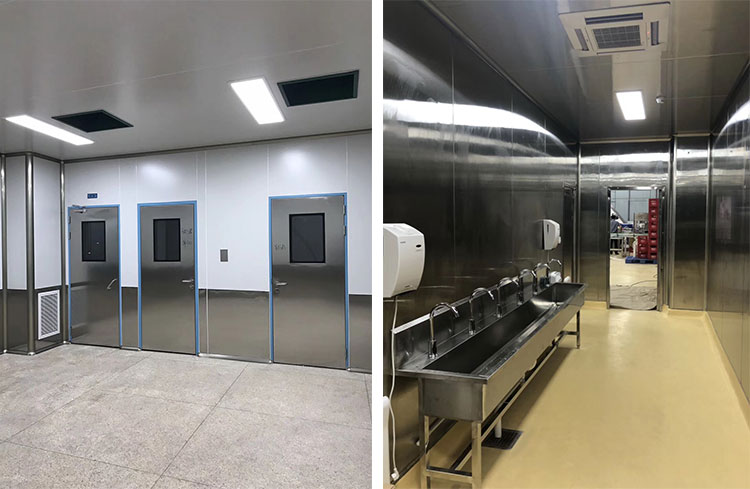 正是安徽綠帝食品有限公司這樣的企業情懷,遇到了同樣也是以企業社會責任感為公司企業文化的無錫易純凈化設備有限公司。兩家的深入交流、溝通后,建立了深深的好感和信任!由于安徽綠帝食品有限公司主要生產加工肉制品,無錫易純凈化設備有限公司為安徽綠帝食品有限公司打造的十萬等級凈化車間主體結構為不銹鋼材質,因為肉制品生產企業車間內濕度過大,空氣中有鹽分,容易腐蝕普通的彩鋼板,并且使用壽命有限,更容易滋生細菌,不好維護保養,所以易純凈化采用了304不銹鋼潔凈板材做吊頂和隔斷,更易維護,使用壽命更久,更符合安徽綠帝食品有限公司的生產工藝。