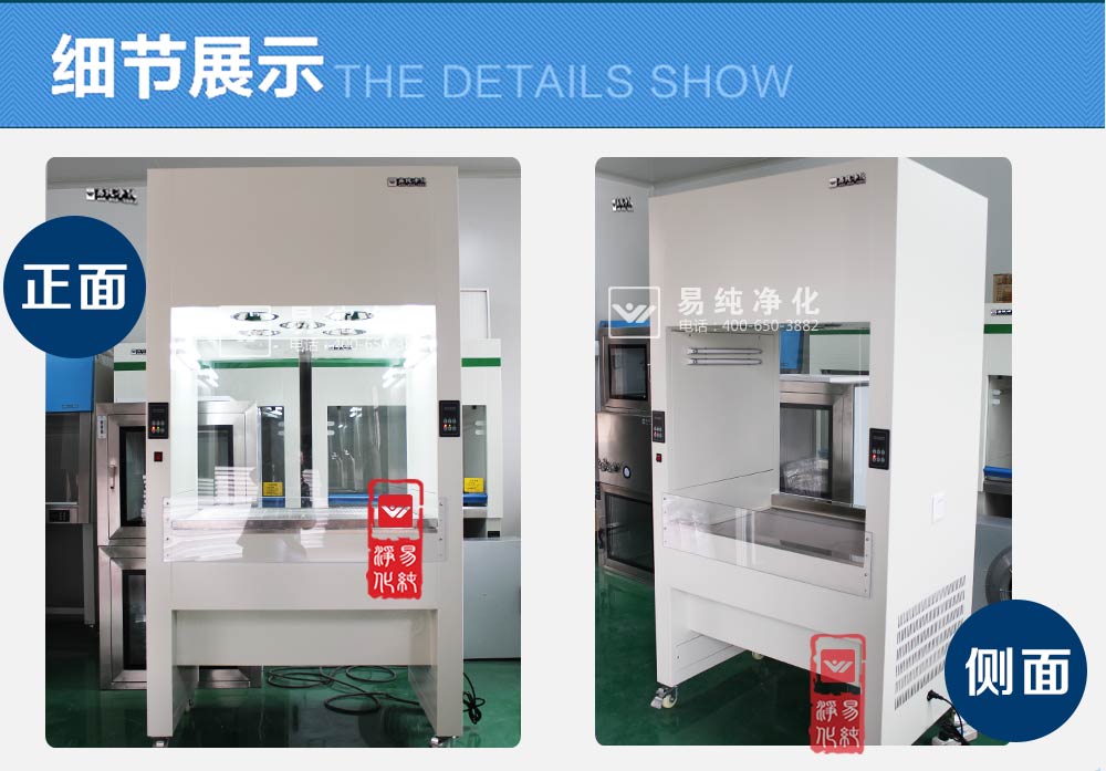 上部吹風:上部有風機和初高效過濾器,風機經(jīng)過加壓將過濾后的潔凈空氣送入到工作區(qū)內(nèi),使工作區(qū)的環(huán)境達到百級;